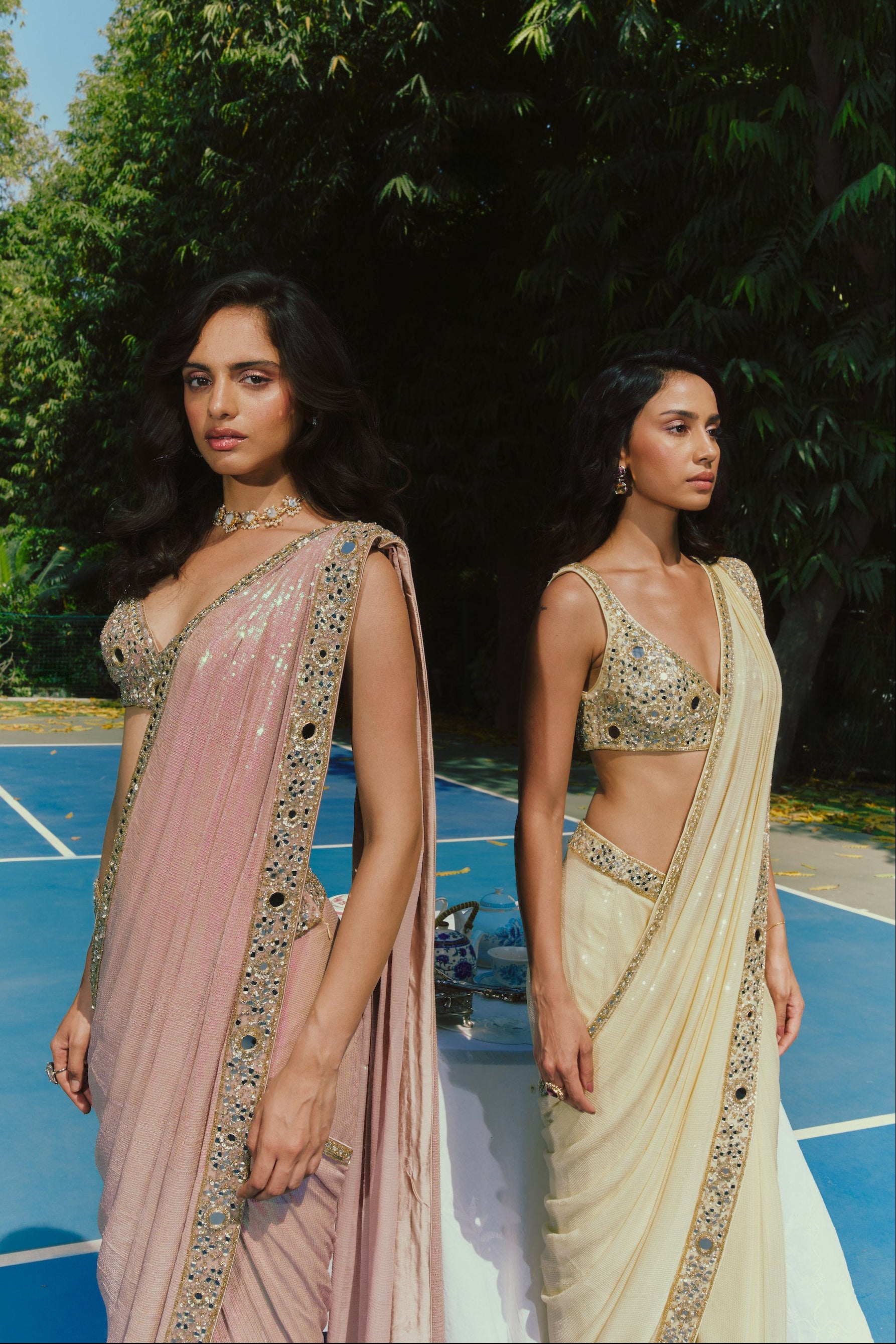 The sequel collection features an array of effortless pre-draped saree's and lehenga's designed to hold the beholder's attention!
