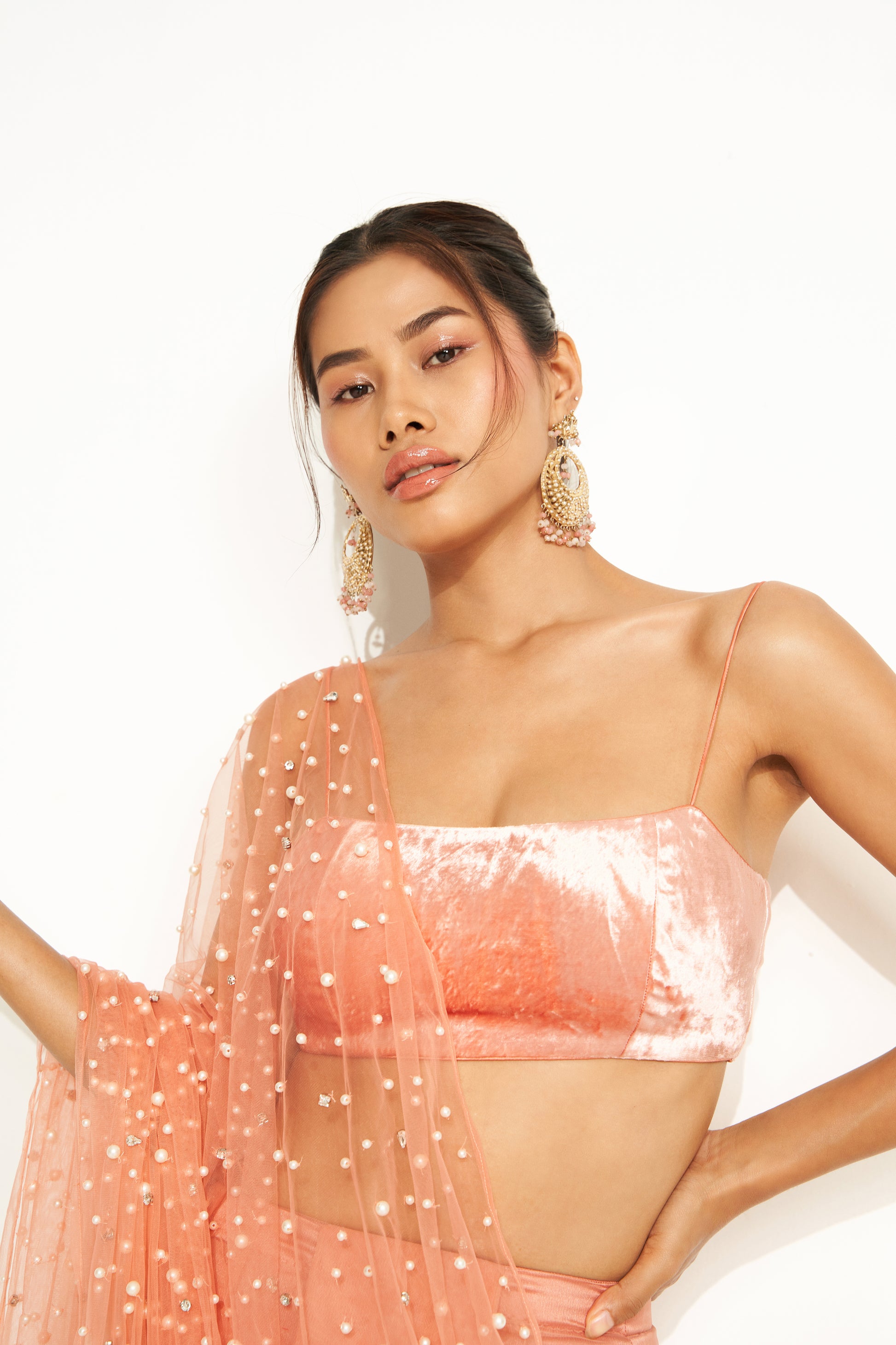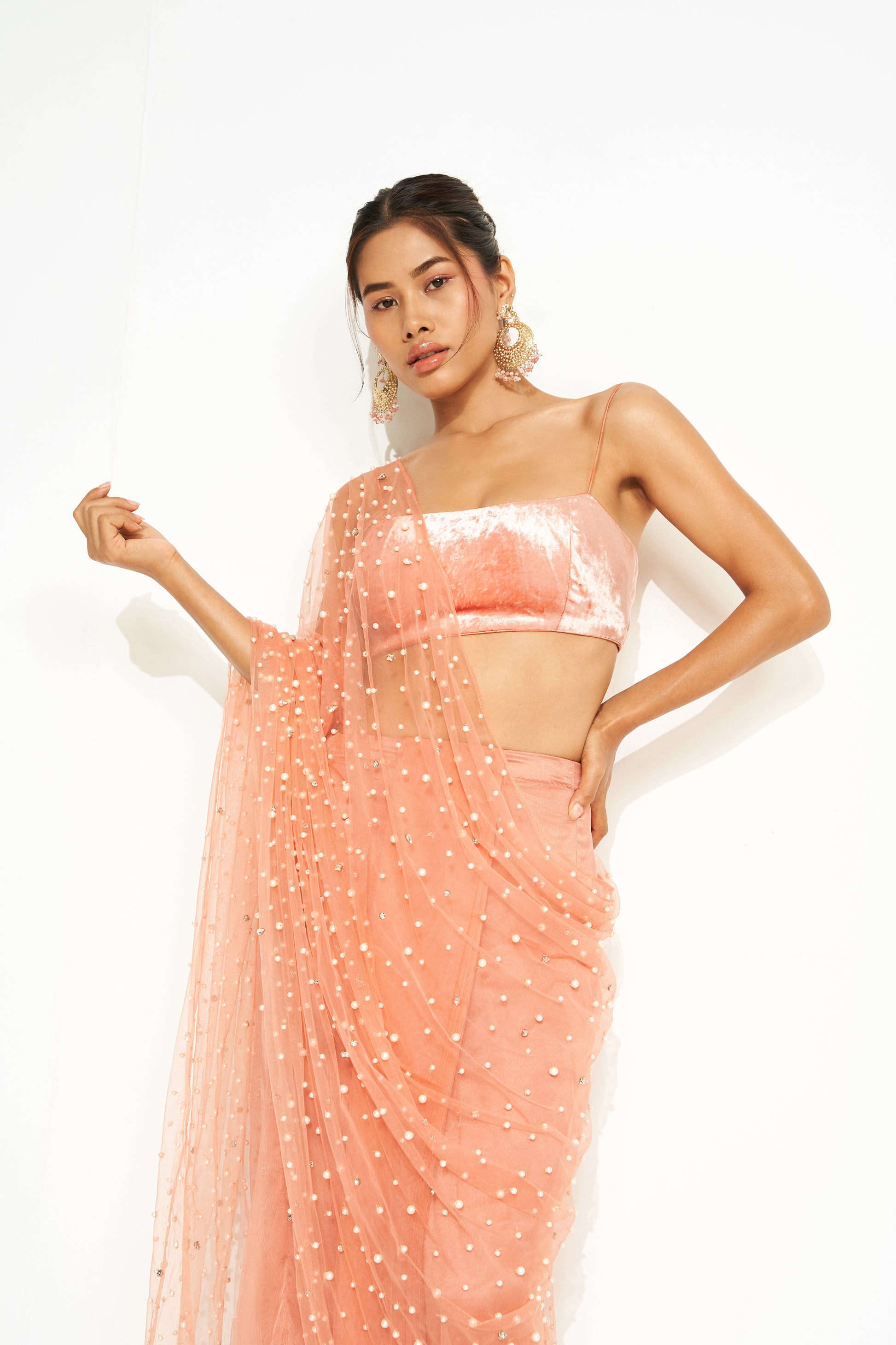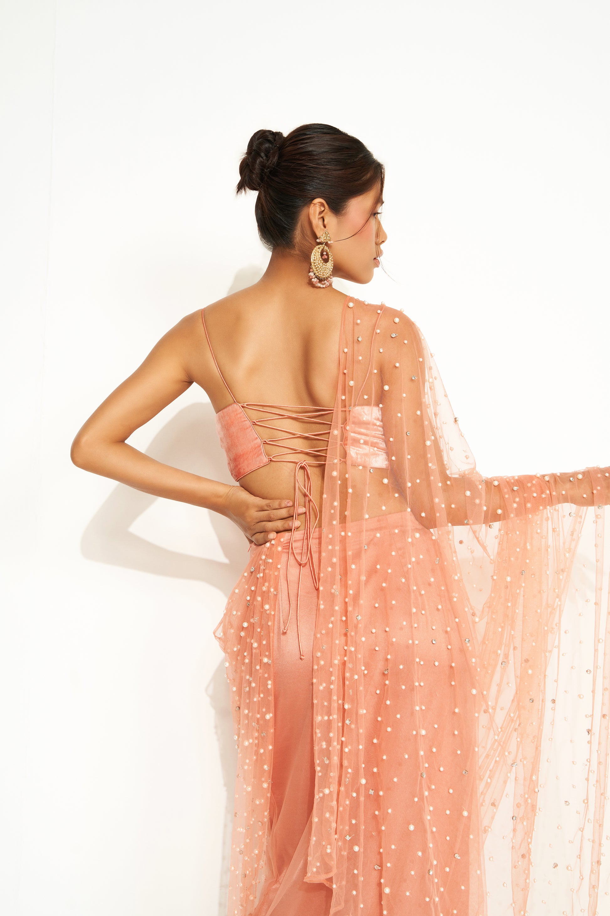 - This set is sold as a deconstructed saree i.e. it. is a three-piece set and includes the blouse, the saree skirt, and the pallu. The pallu is not attached to the saree and hence can be draped in various ways. It can also be used as a dupatta.