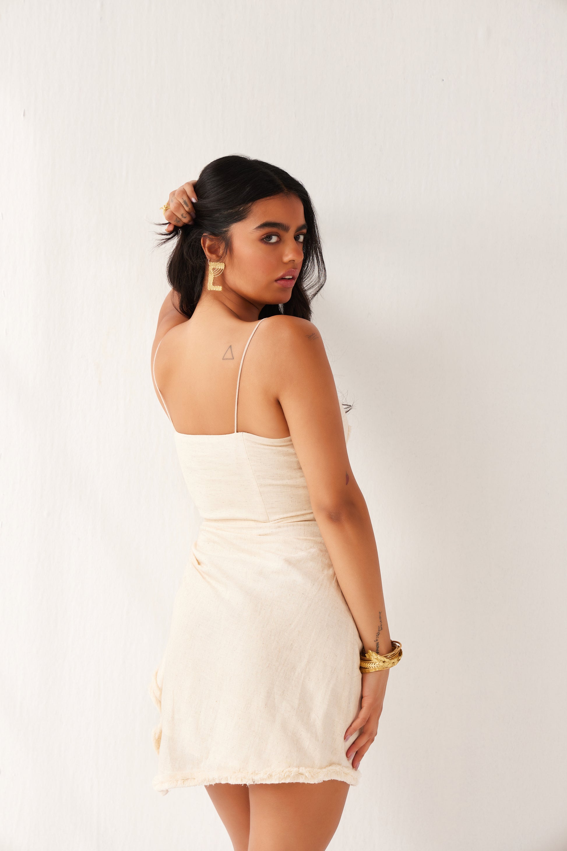 - Cream coloured cotton mini dress