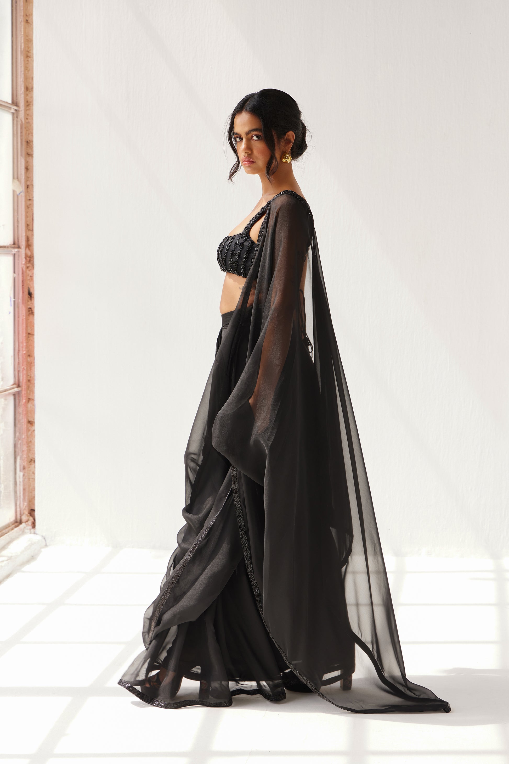 - A timeless flat chiffon saree with an embroidered cut dana blouse